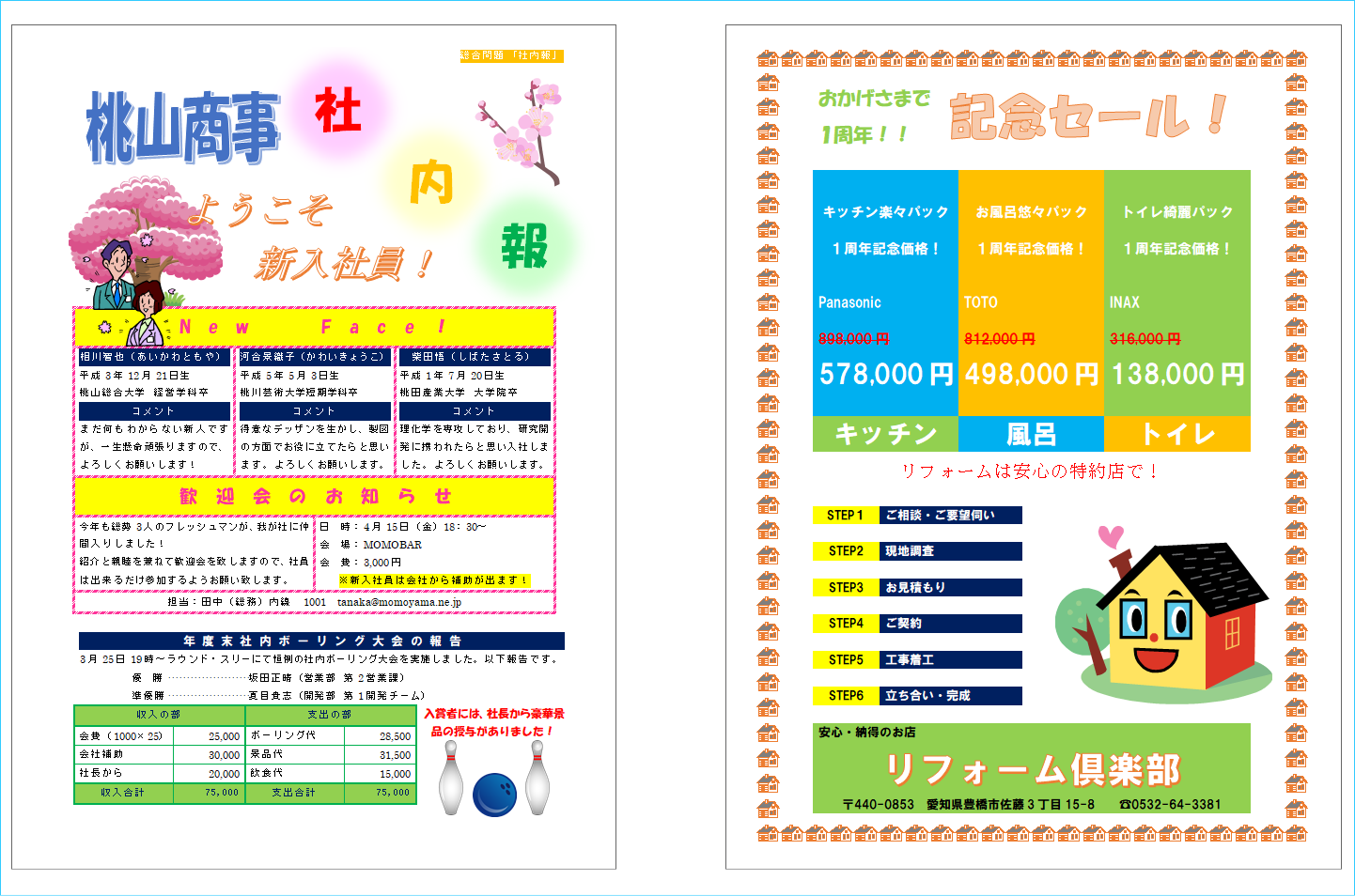 後半は、画像の挿入・操作について学習します。画像を入れるだけでは文書の体裁が整いません。設定を変え、綺麗に見やすく配置させるための機能を勉強します。基礎編を習得する事で、POPやメニューなどの作成が十分可能になります。