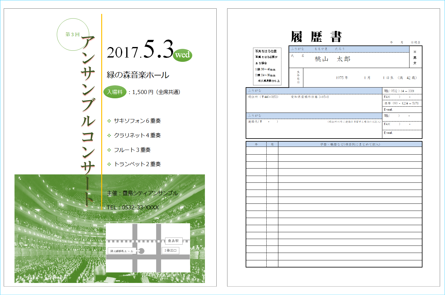 前半は、図形操作やスマートアートの挿入、ファイルの挿入・セクションについて・テンプレート操作の学習をします。図形操作で地図が作れるようになります。また、テンプレートを利用する事により、原稿用紙や履歴書の作成もワードで簡単にできるようになります。