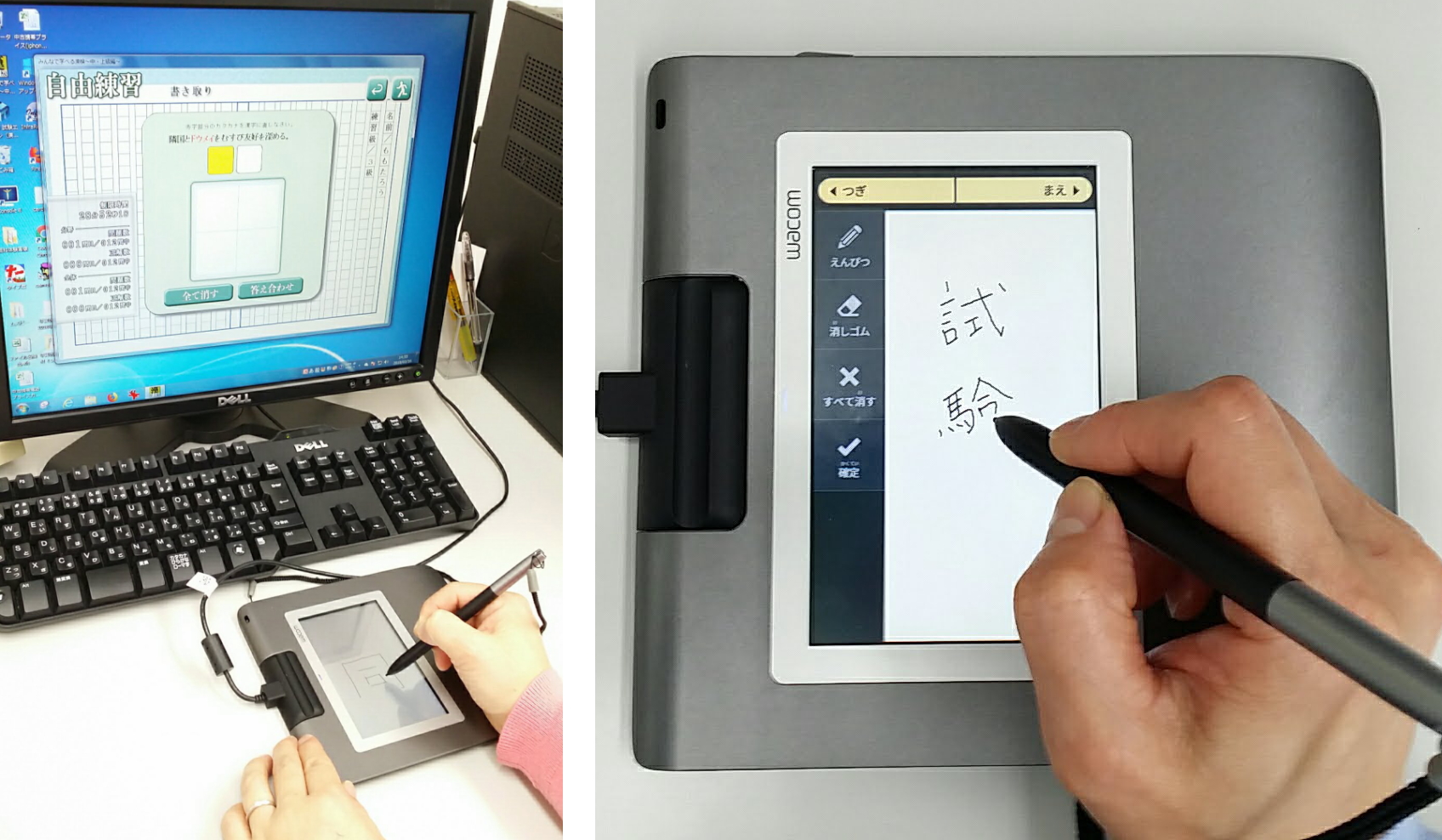 よみがな・漢字の書き取りもタブレットを使って記入します。